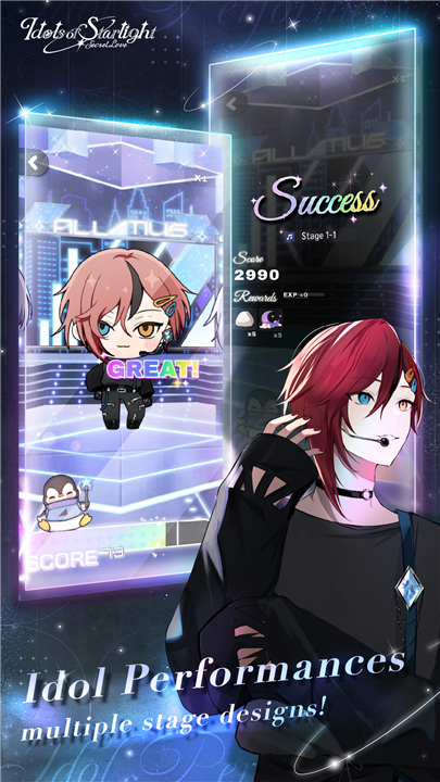 + Enjoy lively chibi-style concerts where you can customize stage designs and challenge yourself with varying difficulty levels.