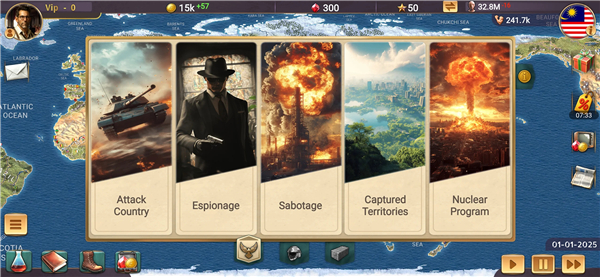 • Strategic Operations: Execute turn-based battles, deploy spies, conduct sabotage, and unleash devastating nuclear strikes.