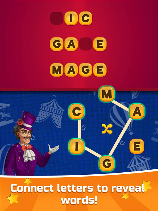 Circus Words brings a colorful and entertaining twist to classic word puzzles by combining vocabulary challenges with a lively circus theme. The game is designed to stimulate the mind through word discovery while maintaining a lighthearted and enjoyable atmosphere. Each puzzle invites players to uncover hidden magic words by connecting letters, gradually building stronger language skills and sharper thinking abilities.