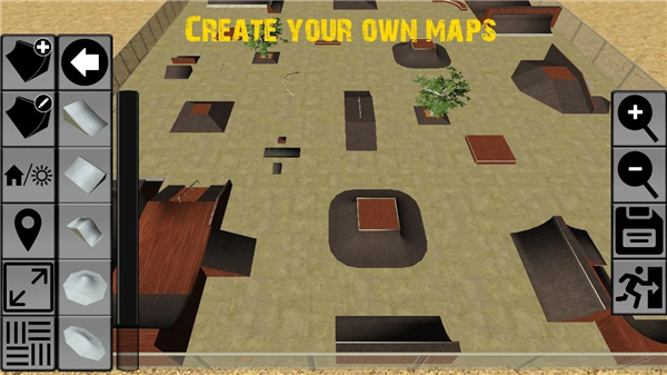 • Design your own custom skate park using the in-game editor, tailoring ramps, rails, and obstacles to your style