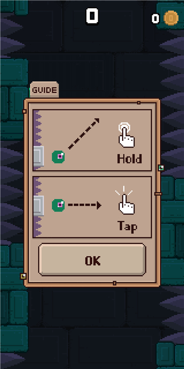 • Hold: Charge up for a longer and higher jump to overcome wider gaps or clear spikes.