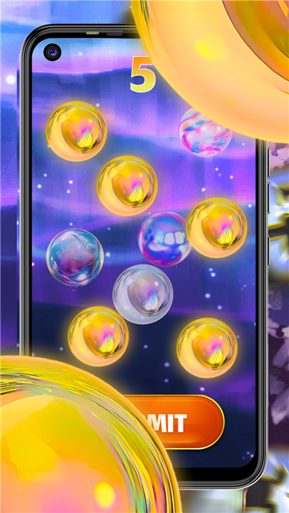 • The game takes place on a colorful 2D grid filled with bright, round balls that constantly shift and rearrange.