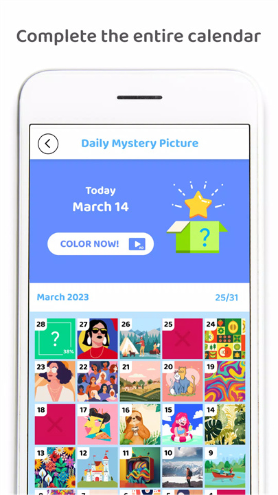 《Pixel Splash - 像素艺术着色》是一款像素涂色游戏,让玩家在轻松愉快的创作中释放压力!在这个迷人的数字世界里,玩家可以选择从花朵到独角兽等多种精美的像素艺术模板,尽情发挥创意。定期更新的模板为玩家提供无穷灵感,而像素艺术相机功能则让玩家的照片化身为独特的像素作品。通过简单的填色玩法,无需Wi-Fi,随时随地享受艺术创作的乐趣!