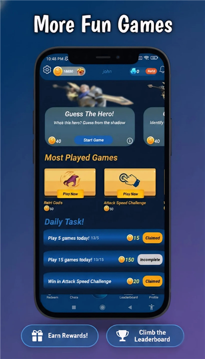 Guess game, play mini games, earn coins, and redeem rewards! Download the latest version of Moba Game Trivia to enjoy new features and updates immediately!