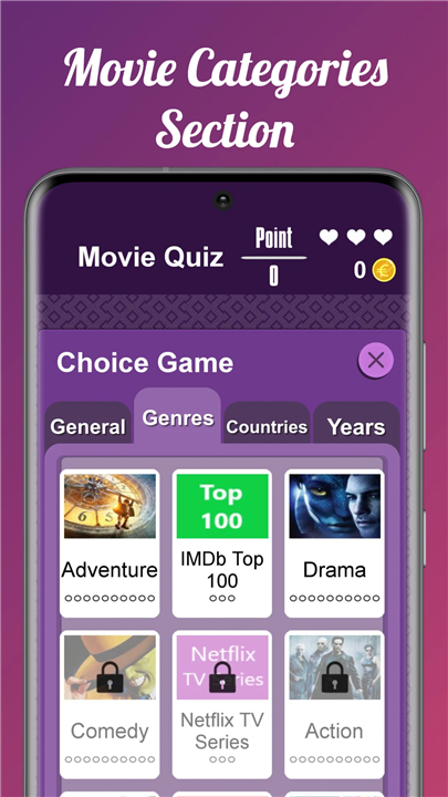 • Thousands of questions across every genre imaginable — comedy, drama, thrillers, animation, and more.