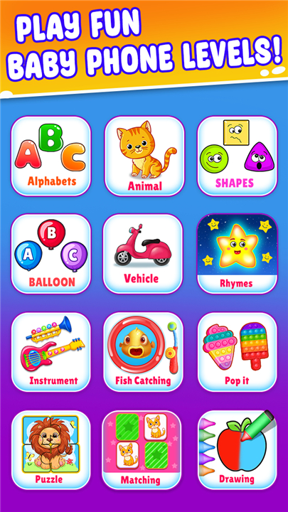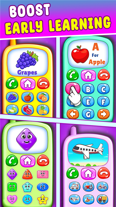 Baby Phone: Kids Mobile Games offers a rich variety of learning activities to foster cognitive and motor development: