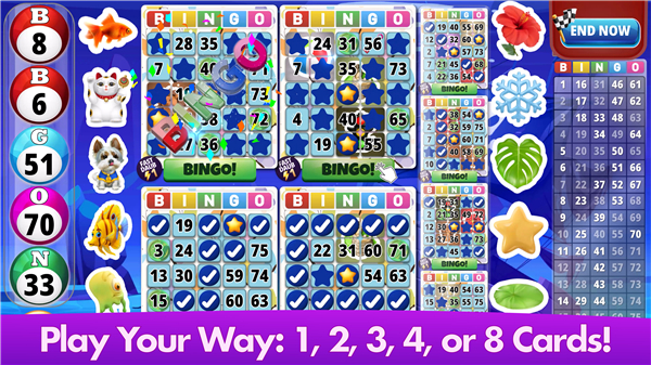A: Think of it as a bingo adventure! You'll advance through a journey of unique levels by mastering specific patterns, beating the clock, and achieving bingos. Each new stage you unlock features its own distinct cards and beautifully immersive backgrounds.
