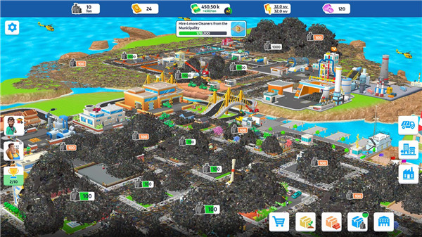Enjoy detailed 3D graphics that bring the world of Trash Tycoon to life. From bustling cityscapes to the busy workers working in your recycling plants, every aspect is meticulously rendered for maximum immersion!