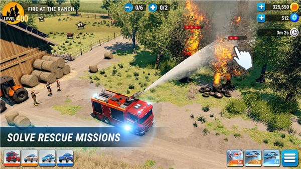 • Unlock and equip realistic emergency vehicles, from ladder trucks to ambulances