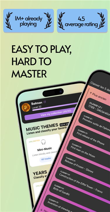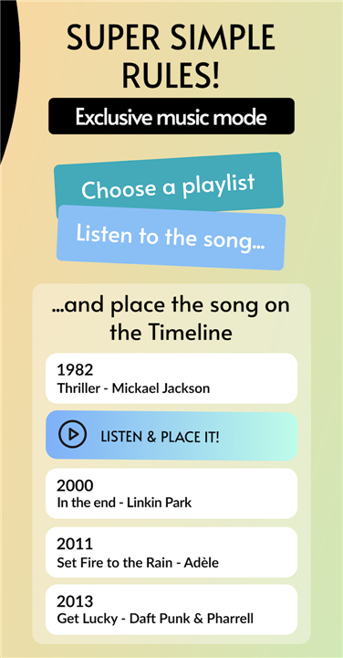 A: Music Mode offers a revolutionary way to play with sound! Instead of just seeing titles, you'll listen to curated song snippets. Your task is to trust your musical intuition and rank these tracks chronologically, building your own musical timeline from vintage classics to modern chart-toppers. It's a fantastic test of your ear and your knowledge of music history.