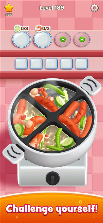 A: In each session you tap to collect ingredients from the pot and then tap again to deposit them onto plates that correspond to their type—seafood, vegetables, meats, and special fish cakes. You have a limited number of temporary slots to hold ingredients you can’t immediately place, so you must think several steps ahead. Clearing matching plates regenerates space both in the pot and in your holding area, keeping the game going.