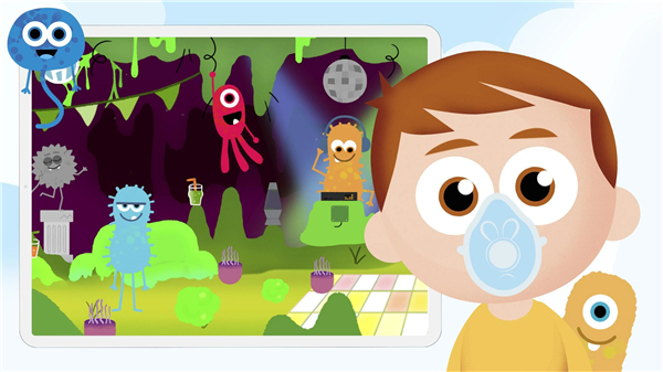 A: The app transforms the experience of aerosol therapy into an adventure. Children can put on a virtual mask and explore the respiratory system, encountering adorable bacteria that participate in fun activities. The primary goal is to find a magical item that helps eliminate these bacteria, reinforcing the importance of fighting infections in a playful manner.