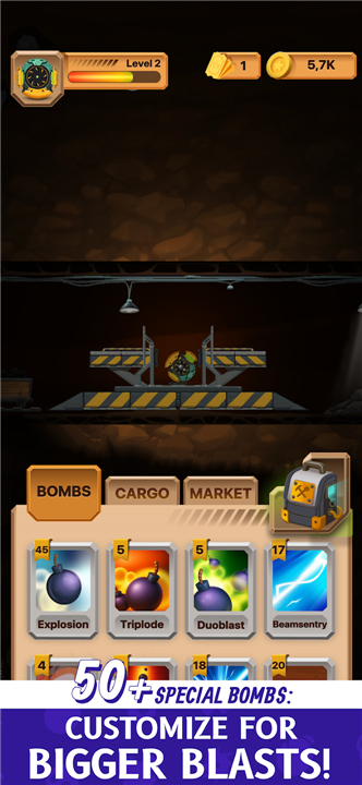 A: The game offers an impressive arsenal of over 50 specialized bomb types, each designed with unique effects and destruction patterns. Choosing the right explosive for the specific rock formation you are facing is a key part of the strategy, as different bombs offer different ways to maximize your resource yield.