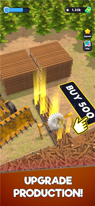 • As you progress, unlock advanced machinery, hire skilled lumberjacks, and automate your operations.