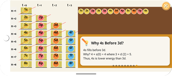 + Visualize electronic configurations through step-by-step interactive builds.