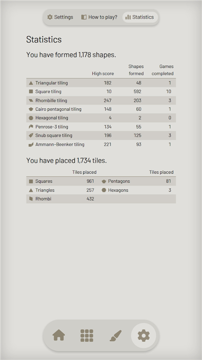 • Which pattern is this? The statistics table now shows shape icons next to the tiling names.