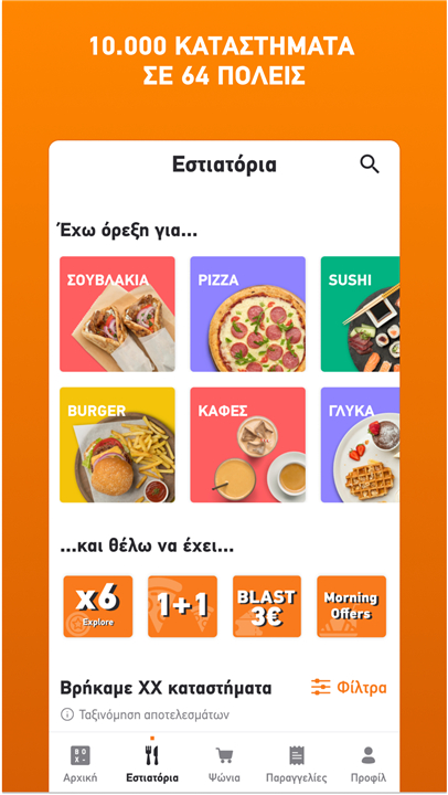 • Same-day delivery from Masoutis & Kritikos supermarkets at in-store prices.