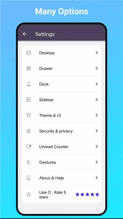 Tailor your experience with features like individual app icon and name editing, icon dot support, drawer color settings, and lockable desktop layouts.