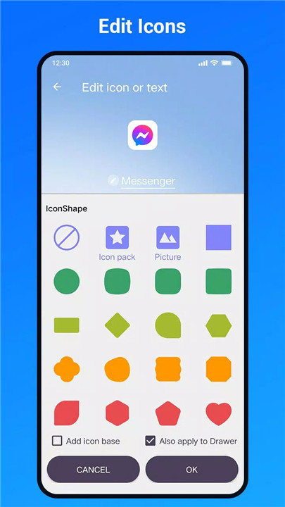 Choose from a variety of built-in icon themes such as round, square, and teardrop styles, enhancing aesthetic appeal.