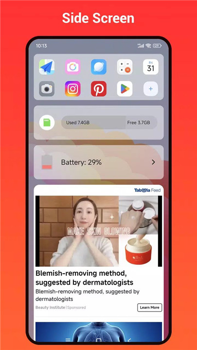 Access a range of utilities and shortcuts conveniently through the side screen feature, streamlining navigation.