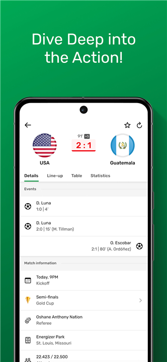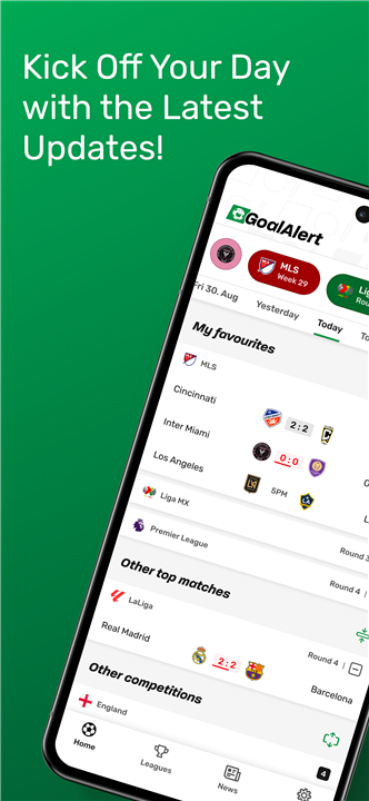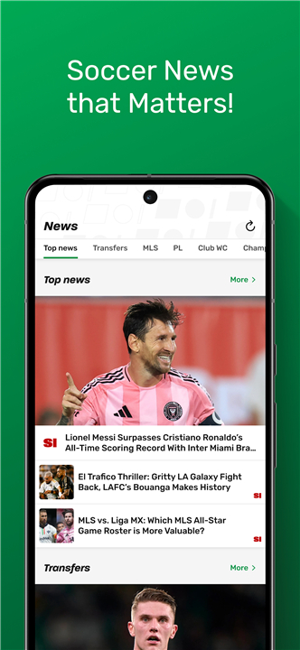 • Set your favourite teams, and enjoy never missing a goal—whether it’s in MLS, Europe’s top leagues, or the world’s biggest tournaments.