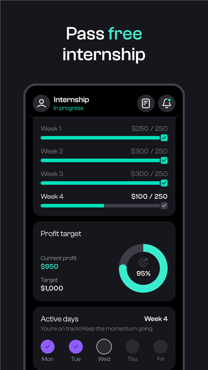 • Apply for the Internship – Meet weekly profit goals while following clear risk management rules.