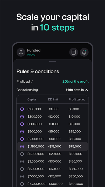 • Start your journey today: download the app, register, and take your first step toward trading with serious capital and limitless potential.