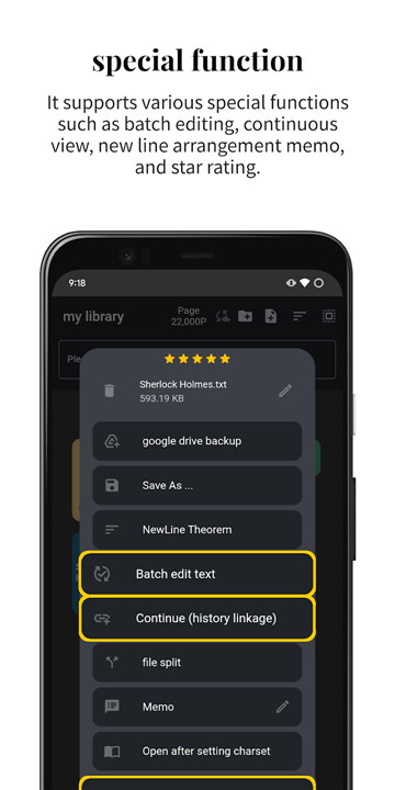 Users can synchronize their reading position across different devices through Google Drive integration.