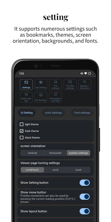 Moreover, the application features a powerful TTS filter function, allowing users to personalize their listening experience according to their preferences. Overall, this text viewer application is a versatile tool that elegantly meets both reading and listening needs.