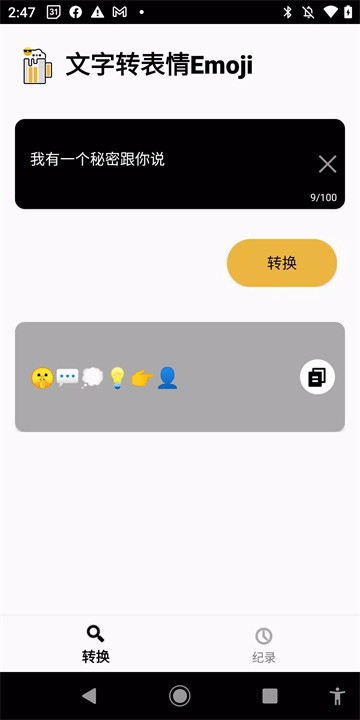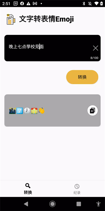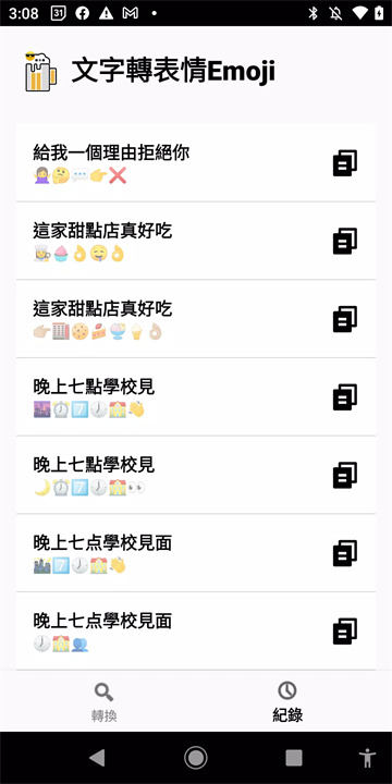 只需输入文本,点击转换按钮,应用会自动生成相应的表情符号,您可以选择合适的表情并复制粘贴到社交媒体或聊天中。