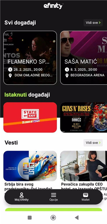 EFINITY Cashback is the only ticketing cashback system available in the region. By purchasing tickets for select events, users earn up to 5% back in “e” tokens, where 1 token equals 1 Serbian dinar (RSD). These tokens are automatically added to your wallet within the app and can be used immediately or saved for future purchases.