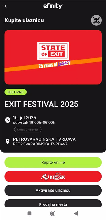 1. Purchase tickets for selected cashback events (such as the EXIT Festival) within the EFINITY app.