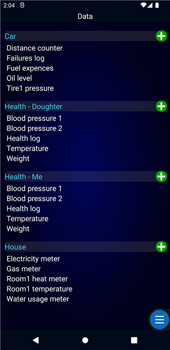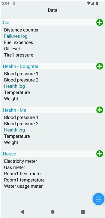 • Whether you want to keep an eye on personal health metrics, financial records, fuel consumption, or household usage counters, this app offers a simple yet powerful way to record, store, and analyze your data.
