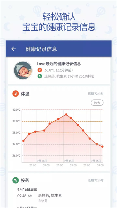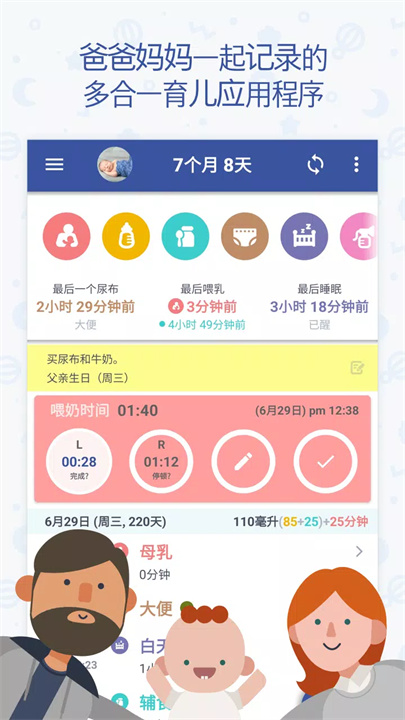不管是母乳、奶粉、体温还是药物,简单点击就能记录下来,轻松管理宝宝的日常。