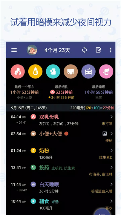 微件功能:随时查看宝宝的喂养、睡眠等重要信息,方便掌控宝宝的需求。