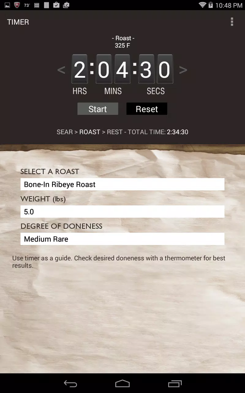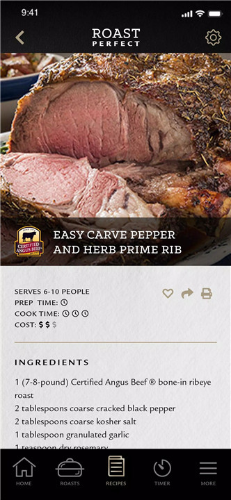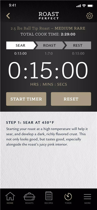 Achieve flawless roast beef with the app’s built-in cook timer. Choose your preferred internal temperature, and the timer will guide you through the process, helping you reach perfect doneness whether you like your roast rare, medium, or well-done.
