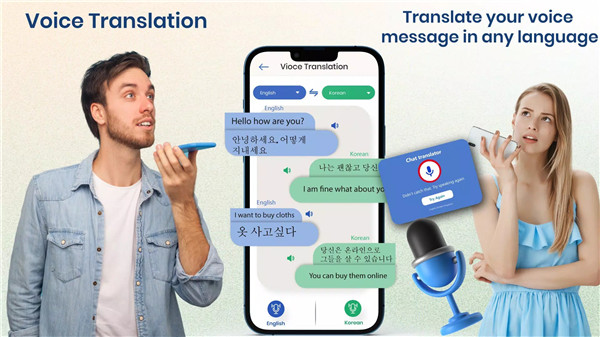 Speak and translate effortlessly with our voice translation feature. Simply dictate your message, and our app will translate it into the desired language on-screen, enabling smooth communication with foreign speakers.