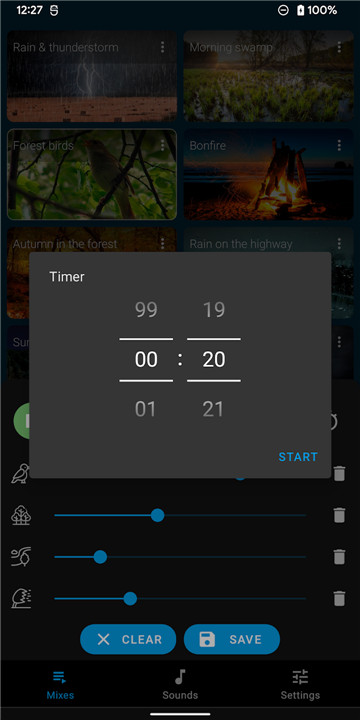 • Access over 50 different sounds across various categories, including nature, animal, and rain sounds.