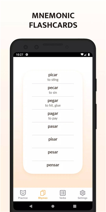 - Mnemonic Flashcards: Learn groups of similar verbs together using mnemonic devices to enhance your memory.