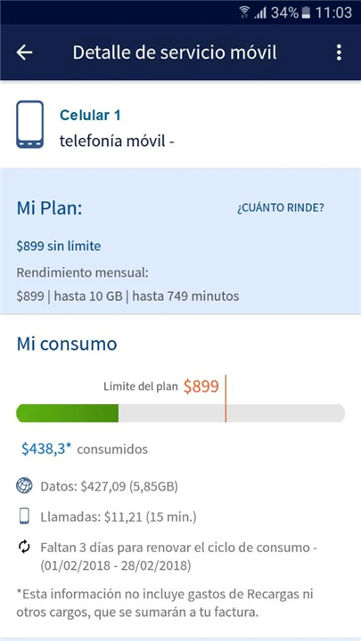 • Monitor your service consumption, including data usage, call minutes, and text messages.