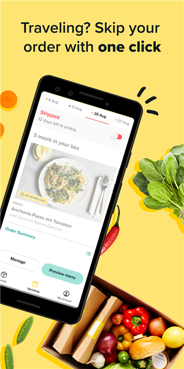 A: Once you’ve logged into the app, you can scroll through over twenty-seven new dishes each week, filtering by preparation time, dietary preference, or cuisine style. After choosing the meals you’d like to cook, you simply select your preferred delivery date—whether that’s a weekday or weekend slot—and confirm. The system then automatically ensures that your chosen recipes and ingredients arrive on the day you’ve selected.