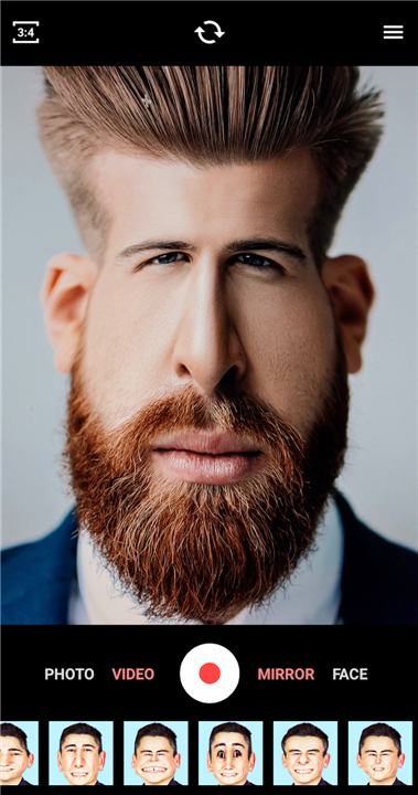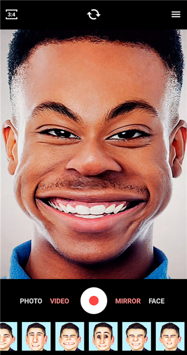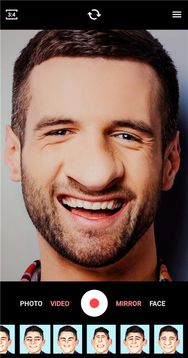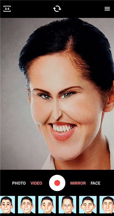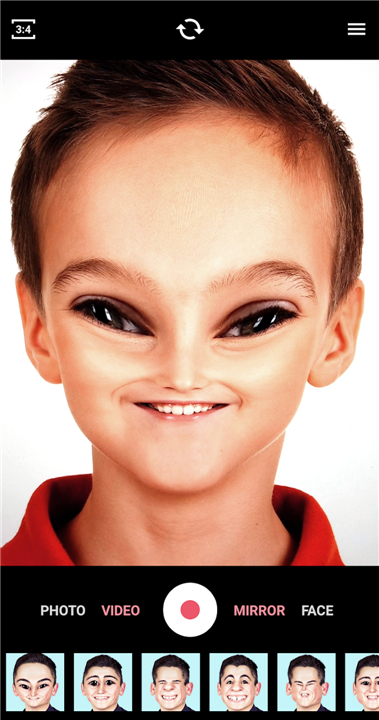 A: In the live camera view, you’ll see your warped face in real time. Tap the round shutter button once to capture a still image or press and hold it to begin recording a short video clip. Release the button to stop recording. All captures are saved to your device’s photo gallery by default.