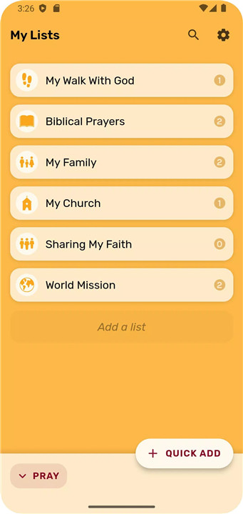 Prayer is a vital practice for many, but keeping consistent and organized can be challenging. PrayerMate is designed to help you develop a daily habit of prayer through a straightforward and distraction-free app. By organizing your prayer points into categories and presenting them as easy-to-swipe index cards, PrayerMate helps you focus on the people and causes that matter most to you.