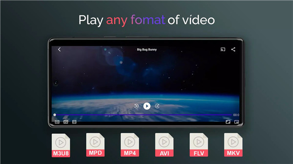 MediaX supports over 90% of modern video formats, including MP4, M3U8 (HLS), MPD (DASH), HEVC, and many more. It also plays DRM-protected content like ClearKey and Widevine.