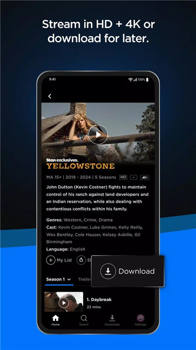 You can stream Stan on Android, iOS, Apple TV, Smart TVs, gaming consoles, Chromecast, and more. All devices sync your watch history for a smooth experience.