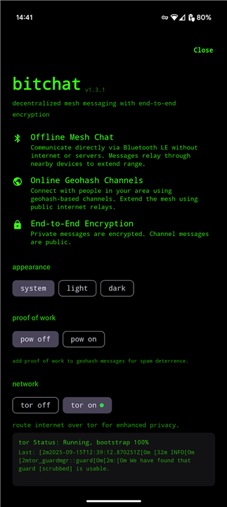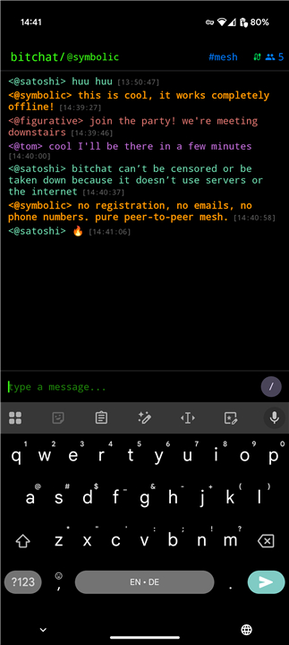 • Built on a decentralized, peer-to-peer architecture, it allows users to exchange messages directly over Bluetooth mesh networks.