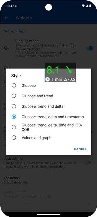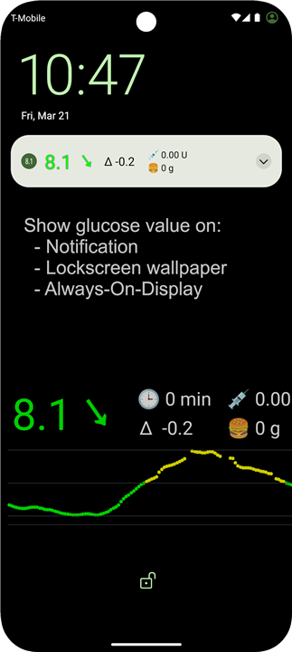 A: Absolutely. GDH offers a variety of visualization tools that let you view your glucose information just the way you want. You can use widgets on your home screen, floating overlays for instant updates, or view your latest readings in notifications and on your lock screen. There’s even optional Always On Display (AOD) support if you’d like to have your glucose levels visible at all times.
