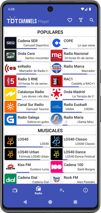 a aplicación ahora se inicia más rápido, con menos errores y mayor eficiencia. La lista de emisoras se guarda localmente tras conectarse al servidor de TDTChannels, lo que permite un acceso mucho más ágil en futuros usos.