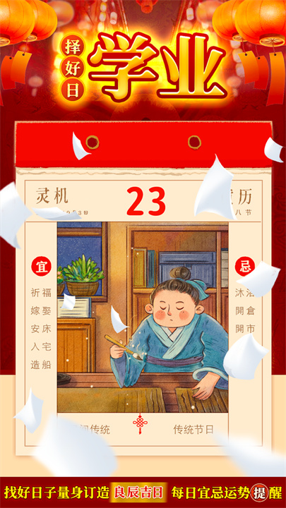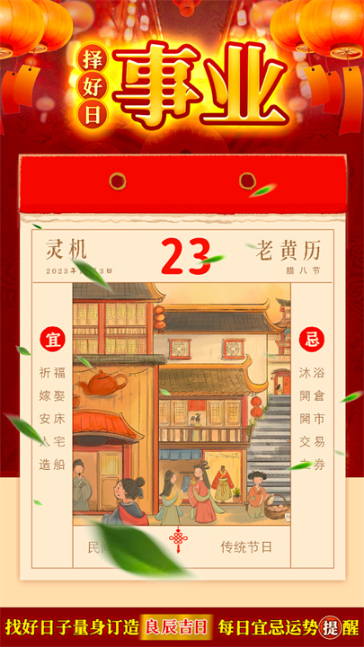 每天,用户可以在黄历页面查看每日一言,美文内容为您的日常生活增添一份雅致。轻松择吉日、关注每日运势、天气预报,或是需要备忘录功能的用户,农民历应有尽有。
