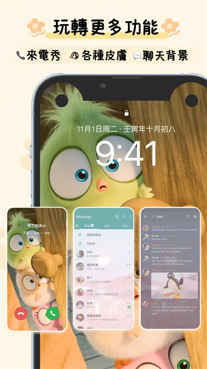 布丁锁屏还支持来电秀、聊天背景和应用皮肤等个性化功能,您可以根据心情和场合,调整手机的每个细节,展现您的独特风格。